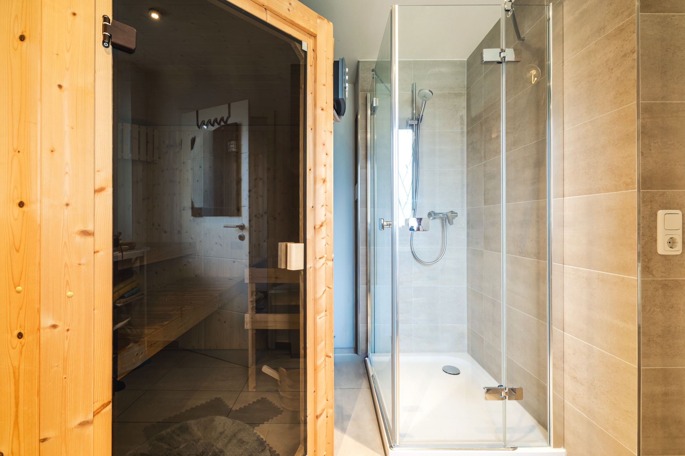Als besonderes Highlight steht beiden Wohneinheiten ein gemeinsamer Saunabereich im Erdgeschoss zur Verfügung – eine private Wellness-Oase zum Entspannen. Die Garage, die sich harmonisch in das Haus einfügt, ist ebenfalls von dieser Etage aus zugänglich.