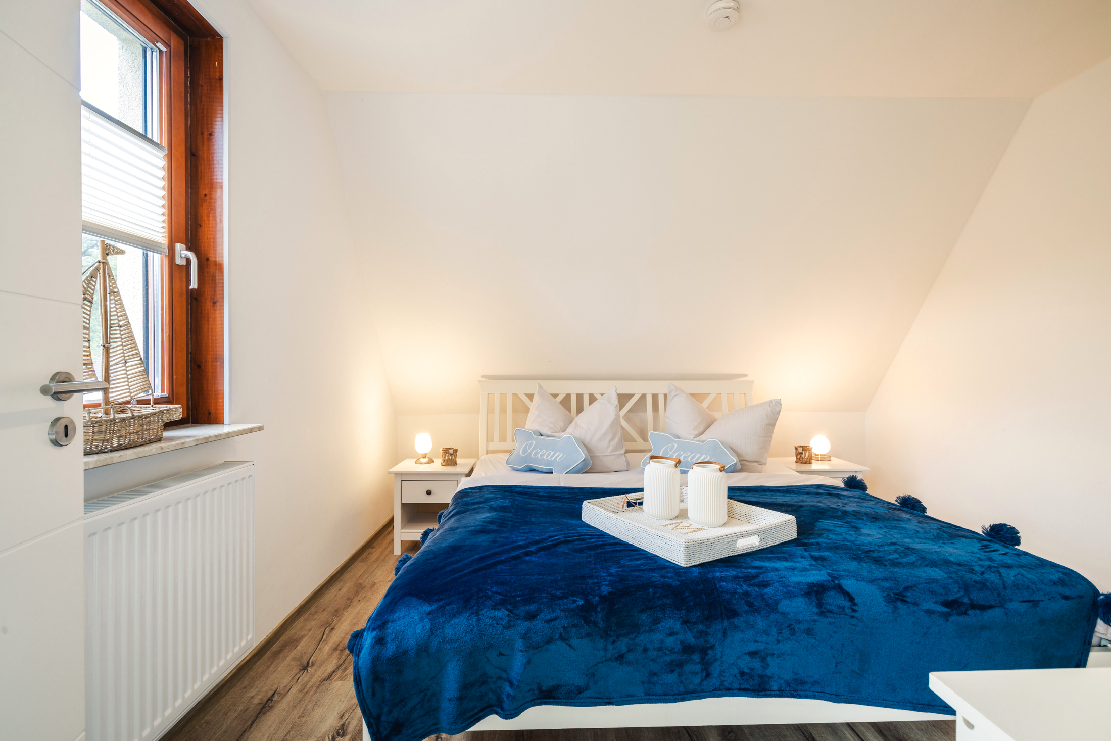 Das Dachgeschoss beherbergt eine eigenständige, charmante Wohnung, die bisher erfolgreich an Feriengäste vermietet wurde. Sie besticht durch eine große Wohnküche mit eigenem Balkon, ein Schlafzimmer, ein Tageslichtbad mit Dusche und ein weiteres Bad en Suite. Die hier abgebildete Möblierung ist, mit Ausnahme einzelner Dekorationsgegenstände, bereits im Kaufpreis inbegriffen. Der ausgebaute und begehbare Dachboden bietet zusätzlich Potenzial für eine weitere Nutzung.