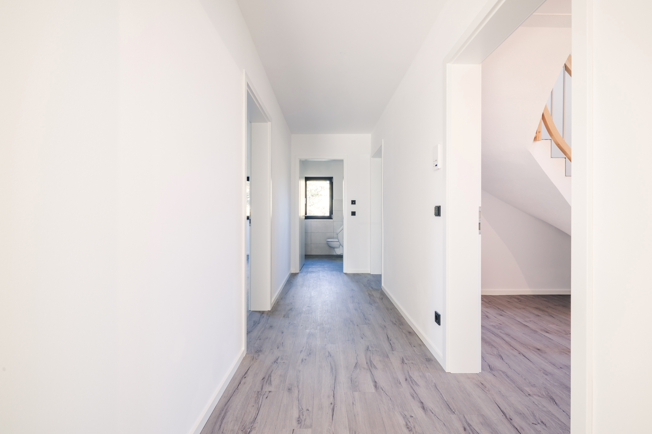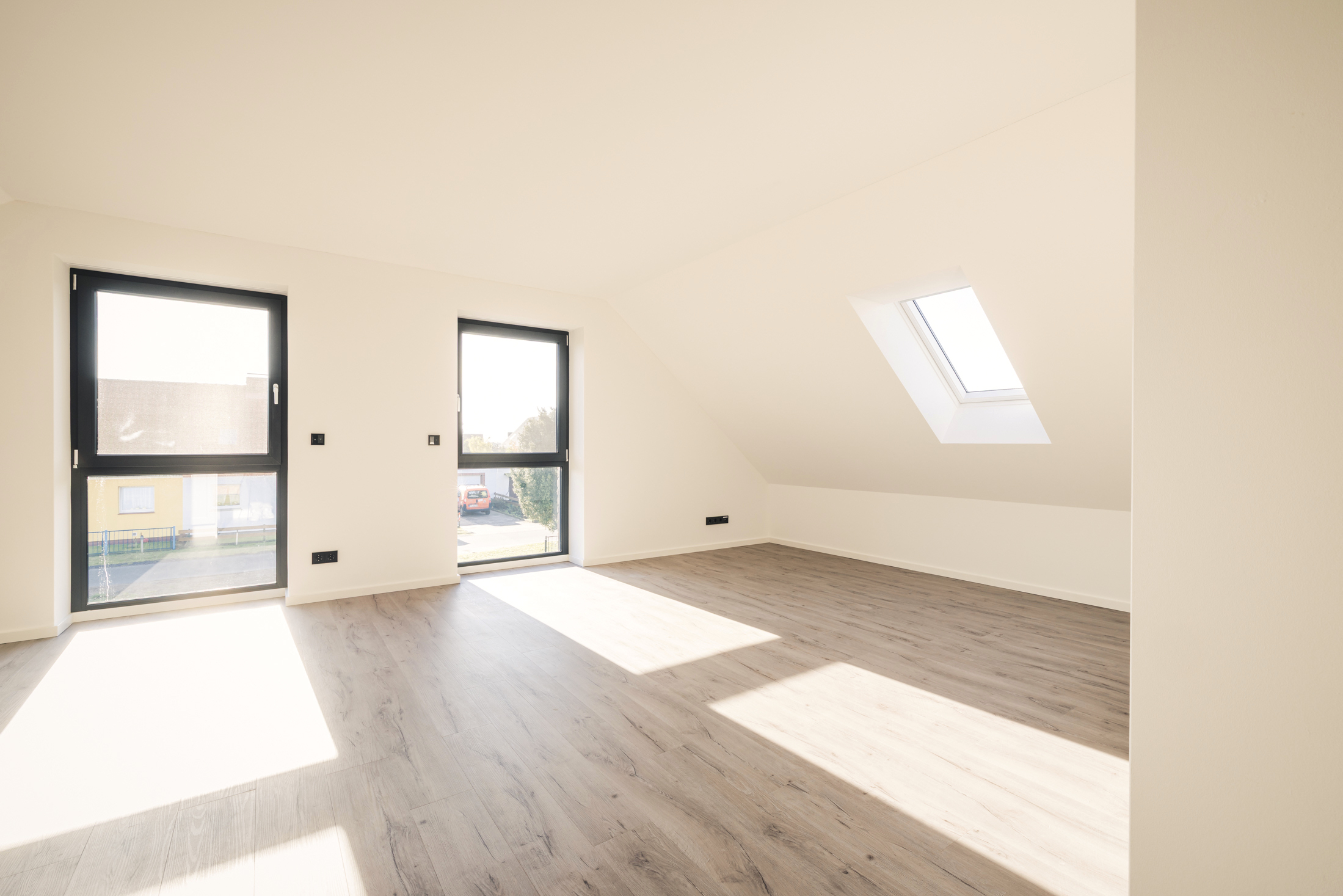 Eine moderne Lüftungsanlage sorgt hier für ein angenehmes Raumklima: Im Erdgeschoss kommt ein zentrales System zum Einsatz, während im Obergeschoss eine dezentrale Lösung für optimale Frischluftzufuhr steht. Zudem sind sämtliche Fenster beider Wohneinheiten mit dezent integriertem Insektenschutz versehen – für maximalen Wohnkomfort zu jeder Jahreszeit.
