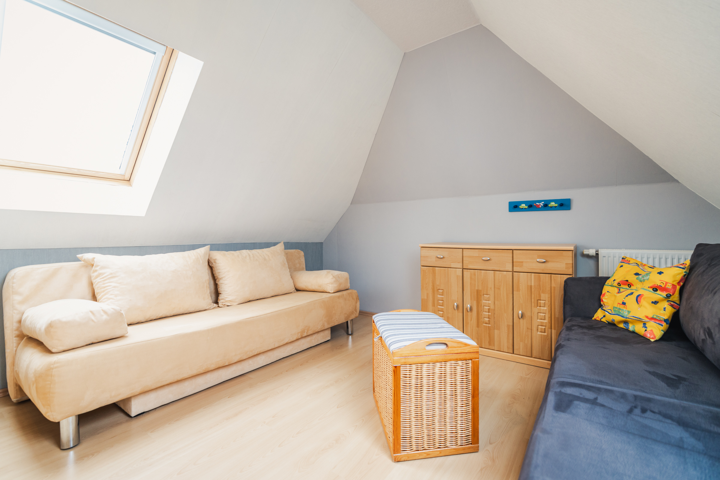 Das Obergeschoss präsentiert sich in beiden Einheiten identisch und bietet zwei großzügige, gut geschnittene Schlafzimmer sowie ein komfortables Badezimmer mit Badewanne. Diese Etage eignet sich hervorragend für Familien, Gäste oder als ruhiger Rückzugsbereich. Darüber hinaus bietet der erschlossene, ausgebaute Dachboden vielseitige Nutzungsmöglichkeiten, beispielsweise als zusätzliches Schlafzimmer, Gästezimmer oder individueller Arbeits- und Hobbybereich.