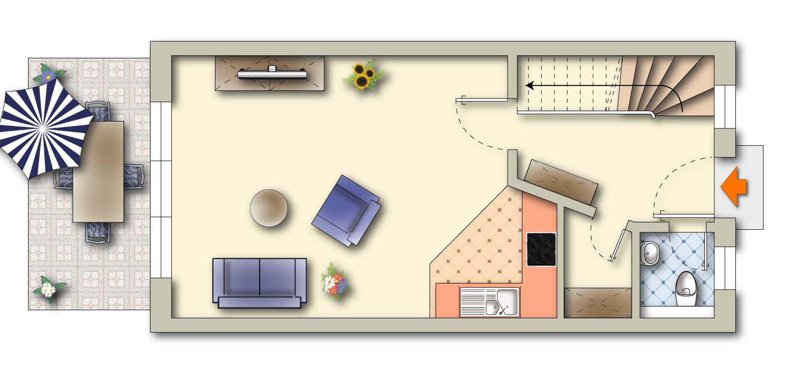 Das Reihenmittelhaus diente in der Vergangenheit sowohl als Ferienunterkunft als auch zur Vermietung an Dauermieter.